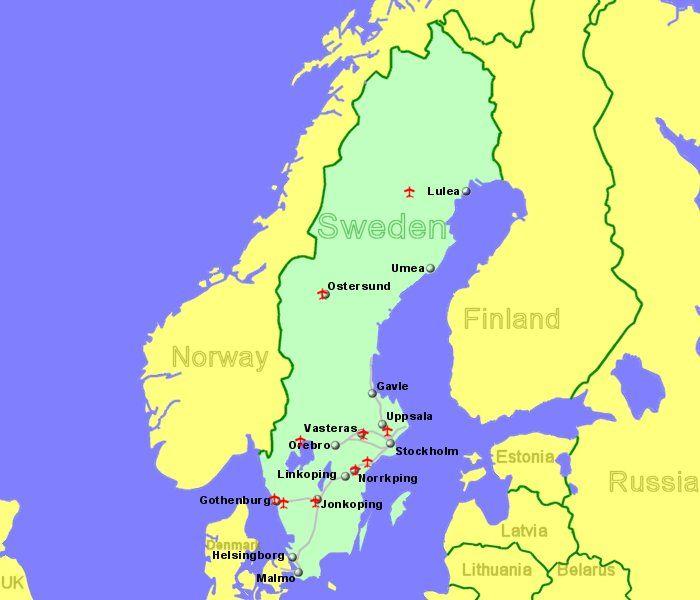 Der verkehrsreichste Flughafen in Schweden ist bei weitem Stockholm-Arlanda Flughafen, die große Verbindung mit dem Rest der schwedischen Flughäfen hat und es hat regelmäßige nationale und internationale Flüge. Stockholm Arlanda als seine in Flughäfen in Schweden Karte erwähnt ist der am besten geeignete Flughafen, wenn Sie nach Stockholm Region reisen. Wenn Sie in die südlichen Teile Schwedens reisen, wäre die bessere Wahl der Flughafen Göteborg oder Malmö (oder sogar Kopenhagen, da es ein größerer Flughafen ist und er eine gute Verbindung mit Schweden hat). Der zweitgrößte Flughafen Schwedens bedient die Stadt Göteborg und befindet sich in der Gemeinde Härryda, 20 Kilometer südöstlich vom Stadtzentrum Göteborgs. Der Flughafen hat zwei Terminals, eines für Inlandsflüge und das andere für internationale Flüge.